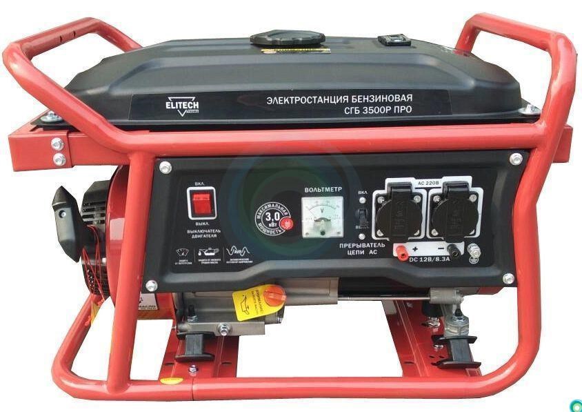 Бензиновый генератор Elitech СГБ 6500 РМ Про полупрофессиональная электростанция на 5,5 кВт. Генератор весит 72 кг, имеет увеличенный размер топливного бака 25л, при расходе бензина АИ 92 в 2,29 л/час время бесперывной работы составляет 11 часов. Генератор подойдет для работы на строительных площадках.