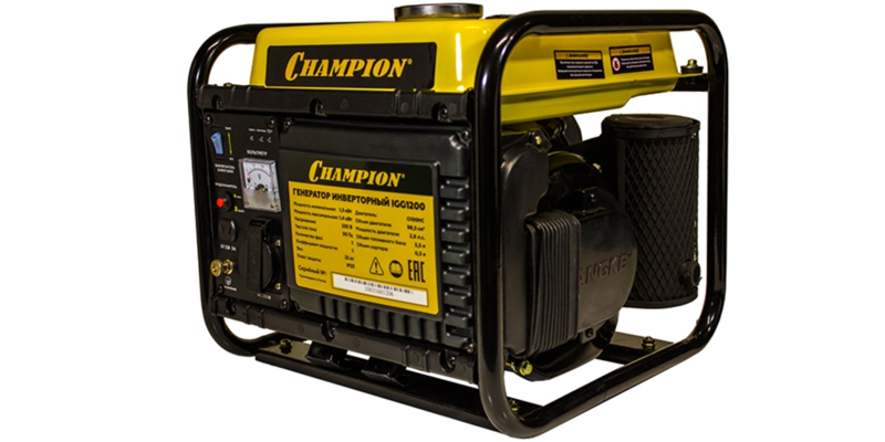 Бензиновый инверторный генератор Champion IGG 1200 отличная полупрофессиональная электроснация с максимальной мощностью 1400 Вт, расход топлива 0,8 л/час, объем топливного бака 5,5 л, при этом работа без дозаправки на максимальной мощности составит 7 часов.